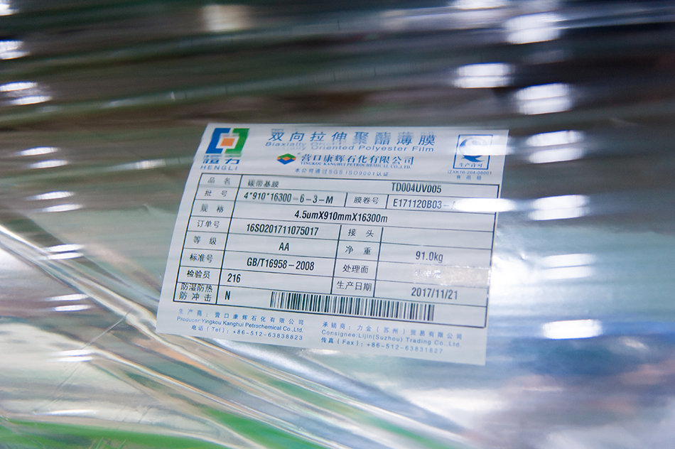 2016年6月,聚酯薄膜部积极响应公司创新研发号召,专门成立4.5微米超薄薄膜研发小组。经过近一年的不断研究、分析和总结,已于2017年9月实现了4.5微米薄膜的稳定生产,产品质量获得国内外客户的一致好评,订单数量逐月上升,公司成为全球第一家使用8.7m直熔生产线生产4.5微米超薄薄膜的制造商。