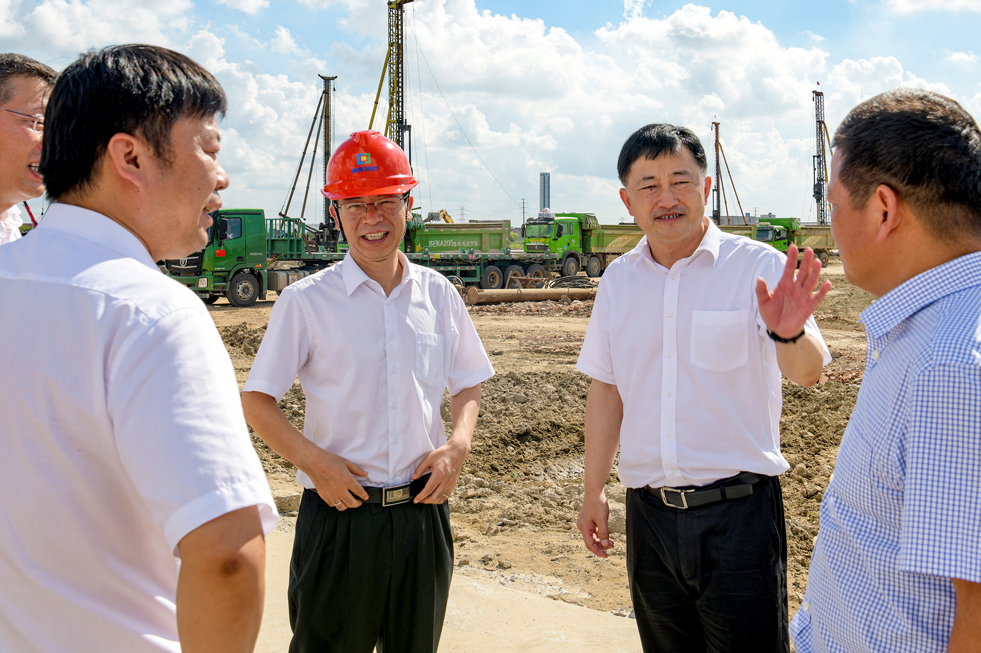 在桩基工程施工现场,李铭书记对工地疫情防控、施工安全、作业环境给予了高度赞扬。他强调,要时刻绷紧疫情防控这根弦,这是项目建筑的重要保障,同时要狠抓施工现场安全管理,督促施工人员遵章守纪,严禁“三违”,做到安全施工、文明施工,高质量、高标准全面推进项目建筑。